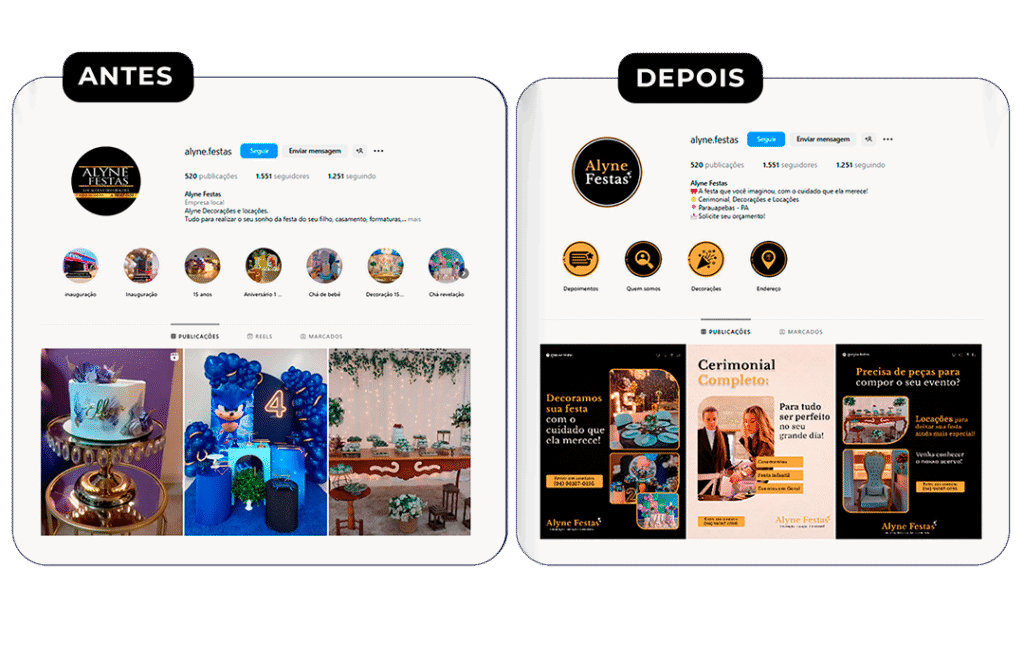 Desenvolvemos toda a identidade do perfil, conteúdos e destaques.